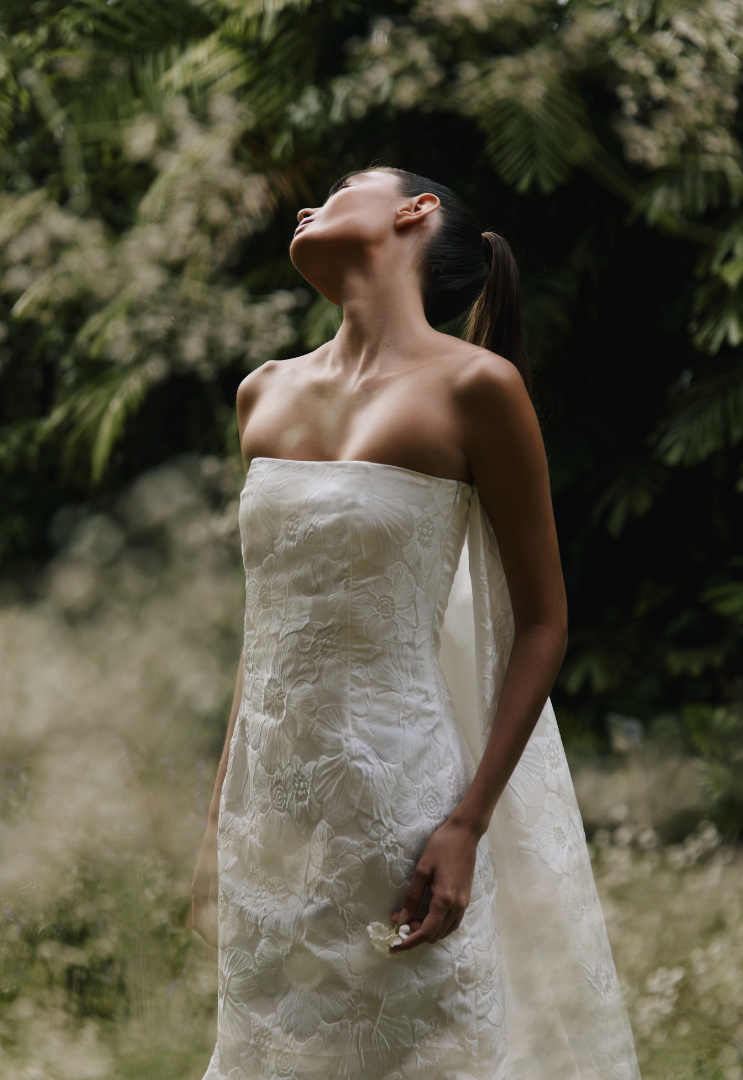 Modern romance, reborn. Signature silhouettes meet couture craft in a palette of pale yellow, rose gold, soft pinks, sky-washed blues, and earth tones. Florals mark renewal—pieces Made for the Moment to wear, keep, and pass on.